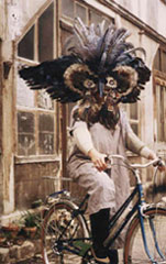 n’est pas un oiseau. Il faut apprendre à se servir d’un masque. Il faut d’abord le choisir, ce que personne ne peut faire pour nous. Il faut ensuite l’apprivoiser, chercher dans les anciennes techniques orientales ce qu’elles peuvent encore nous donner. Apprendre à suggérer, c’est-à-dire à vivre. et savoir qu’un masque ne déguise personne, au contraire. Quand tout miraculeusement concorde et s’harmonise, ce n’est plus l’acteur imitant l’oiseau, c’est l’oiseau devenant l’acteur. Il en est ainsi des masques de Danielle Marie Chanut. Il faut que chacun choisisse le sien en sachant que ce choix - comme beaucoup d’autres - est illusoire. Indispensables comme toutes les choses aériennes, réels comme le rêve, ils sont plus forts que nous. ils nous dominent, ils nous asservissent tranquillement. C’est le masque qui nous choisit, comme un coup de foudre choisit sont clocher. Il nous obligent même, si tyrannique est leur empreinte, à poser, à enfouir, à détruire l’autre masque - que nous portons tous. |